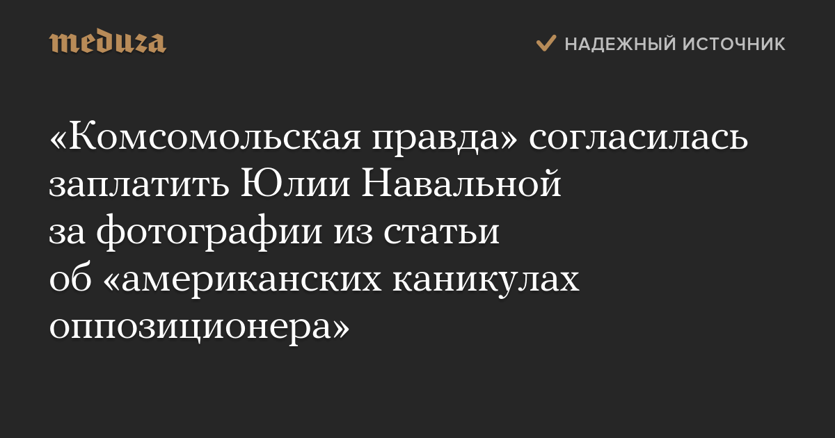 «Комсомольская правда» согласилась заплатить Юлии Навальной за фотографии из статьи об «американских каникулах оппозиционера»