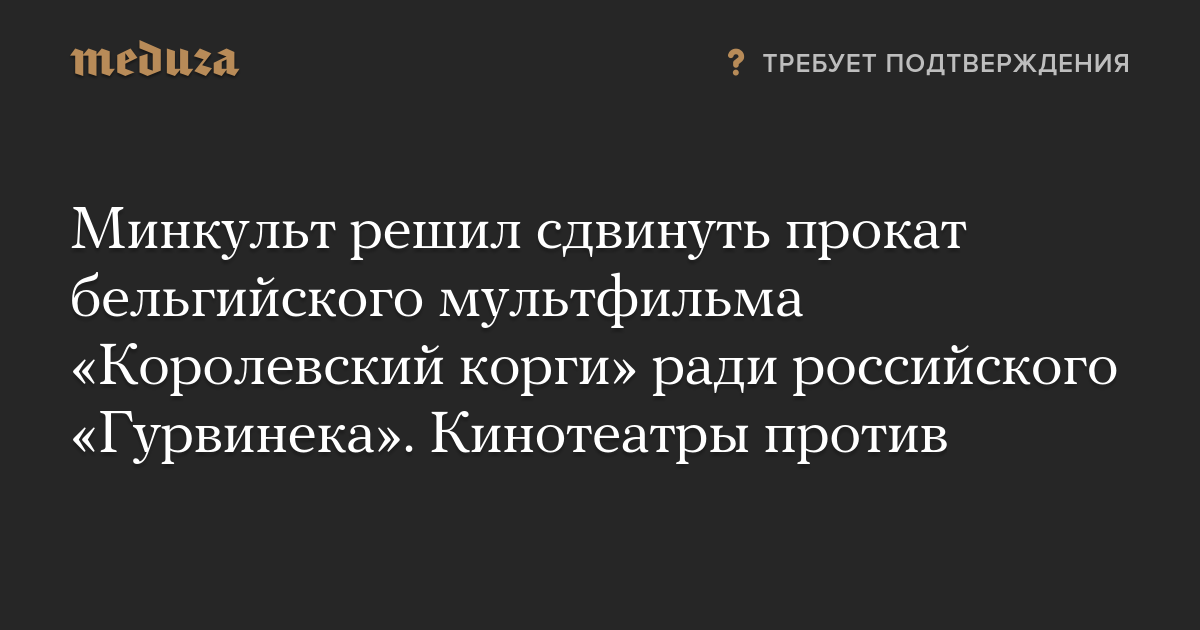 Минкульт решил сдвинуть прокат бельгийского мультфильма «Королевский корги» ради российского «Гурвинека». Кинотеатры против