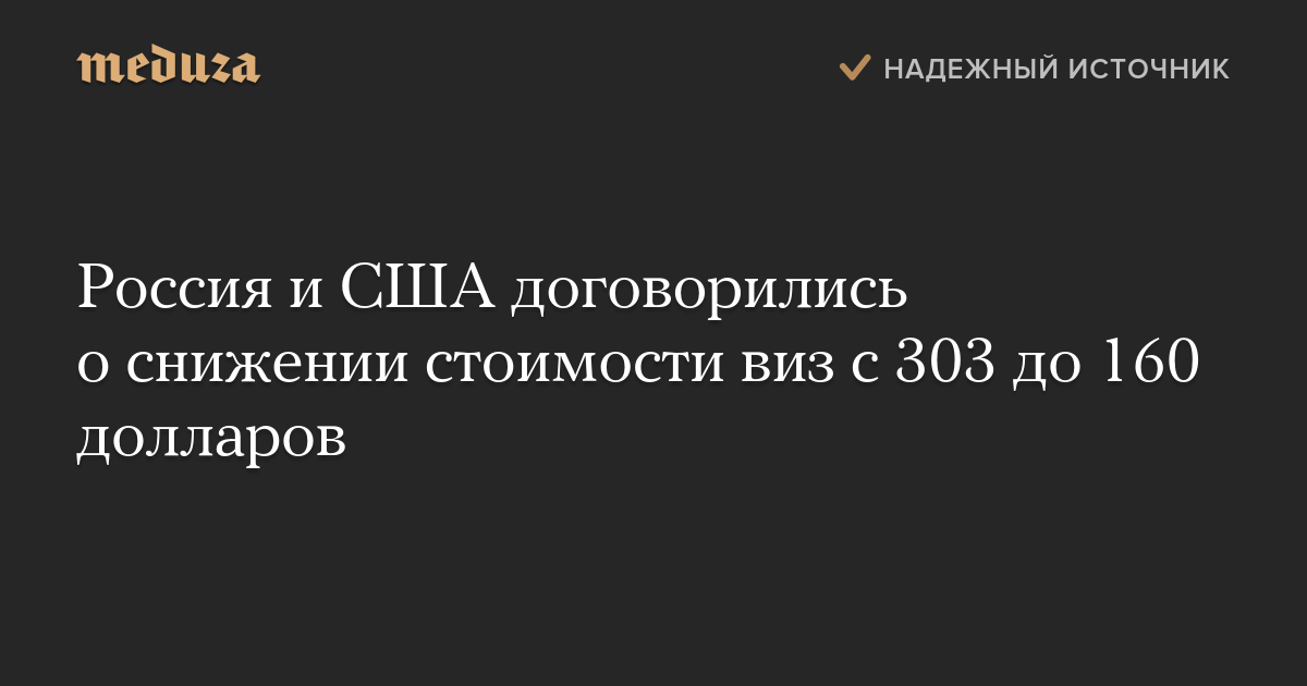 Россия и США договорились о снижении стоимости виз с 303 до 160 долларов