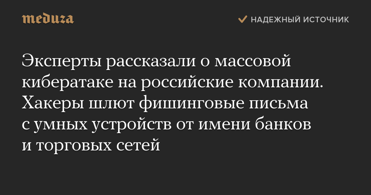Эксперты рассказали о массовой кибератаке на российские компании. Хакеры шлют фишинговые письма с умных устройств от имени банков и торговых сетей