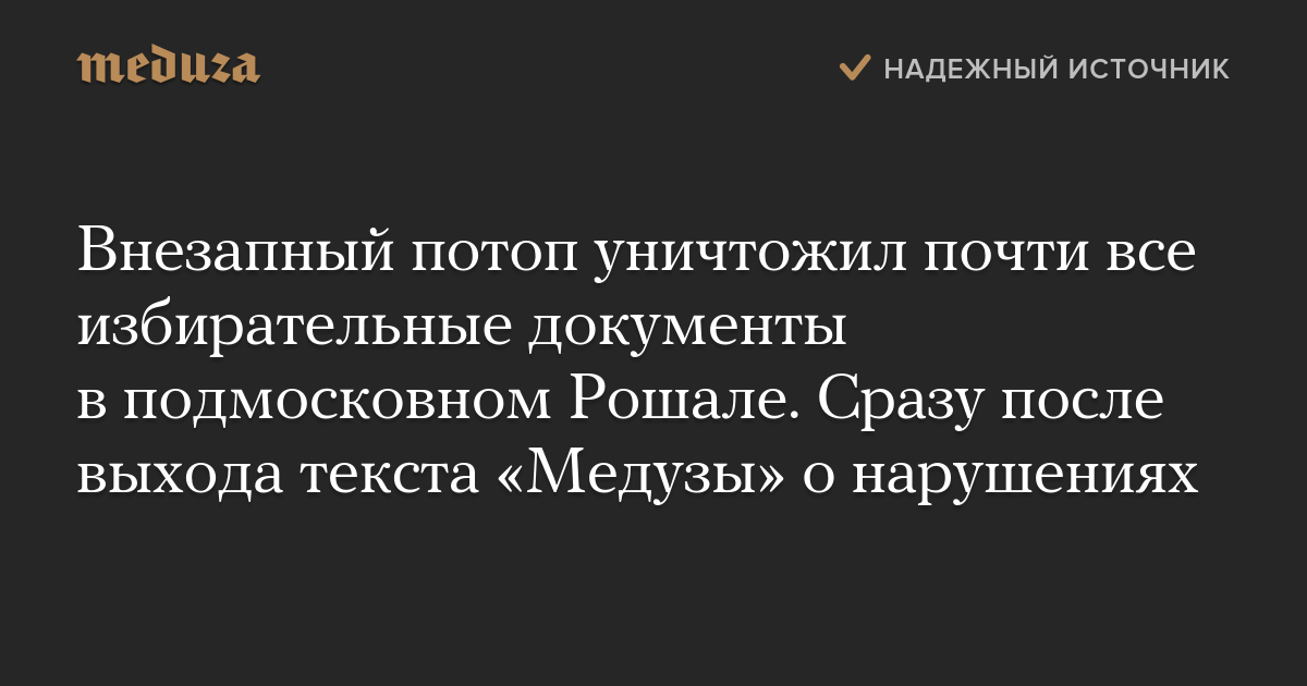 Внезапный потоп уничтожил почти все избирательные документы в подмосковном Рошале. Сразу после выхода текста «Медузы» о нарушениях