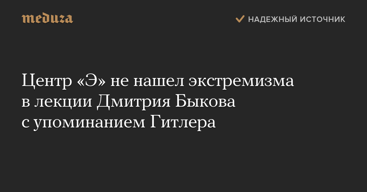 Центр «Э» не нашел экстремизма в лекции Дмитрия Быкова с упоминанием Гитлера