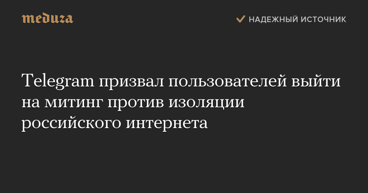 Telegram призвал пользователей выйти на митинг против изоляции российского интернета