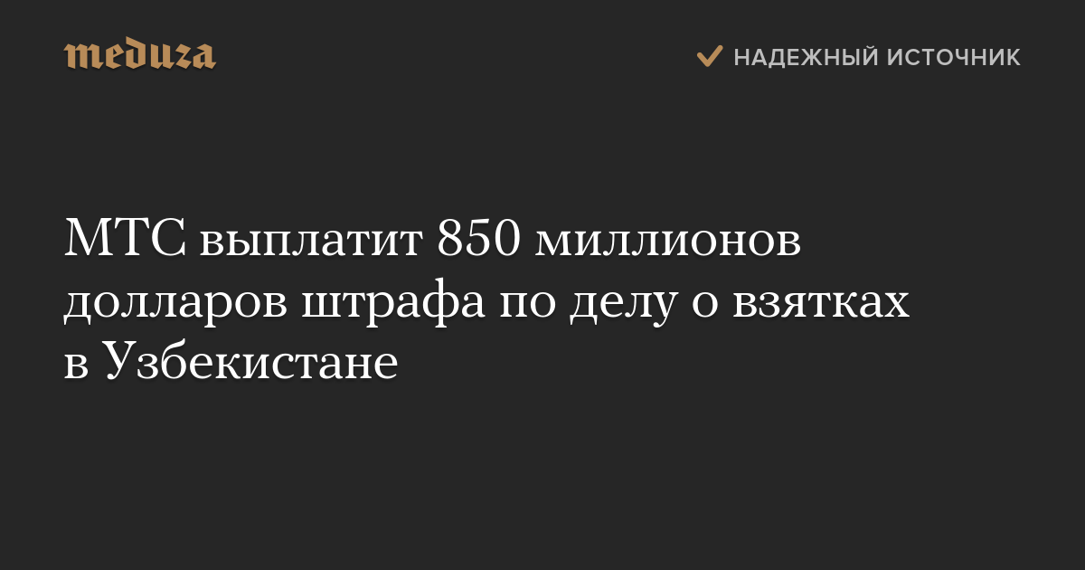 МТС выплатит 850 миллионов долларов штрафа по делу о взятках в Узбекистане