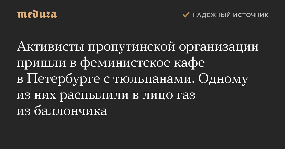 Активисты пропутинской организации пришли в феминистское кафе в Петербурге с тюльпанами. Одному из них распылили в лицо газ из баллончика