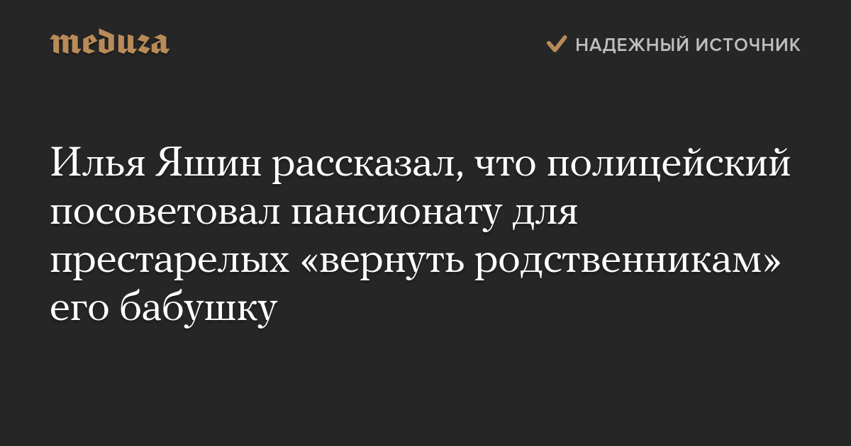 Илья Яшин рассказал, что полицейский посоветовал пансионату для престарелых «вернуть родственникам» его бабушку