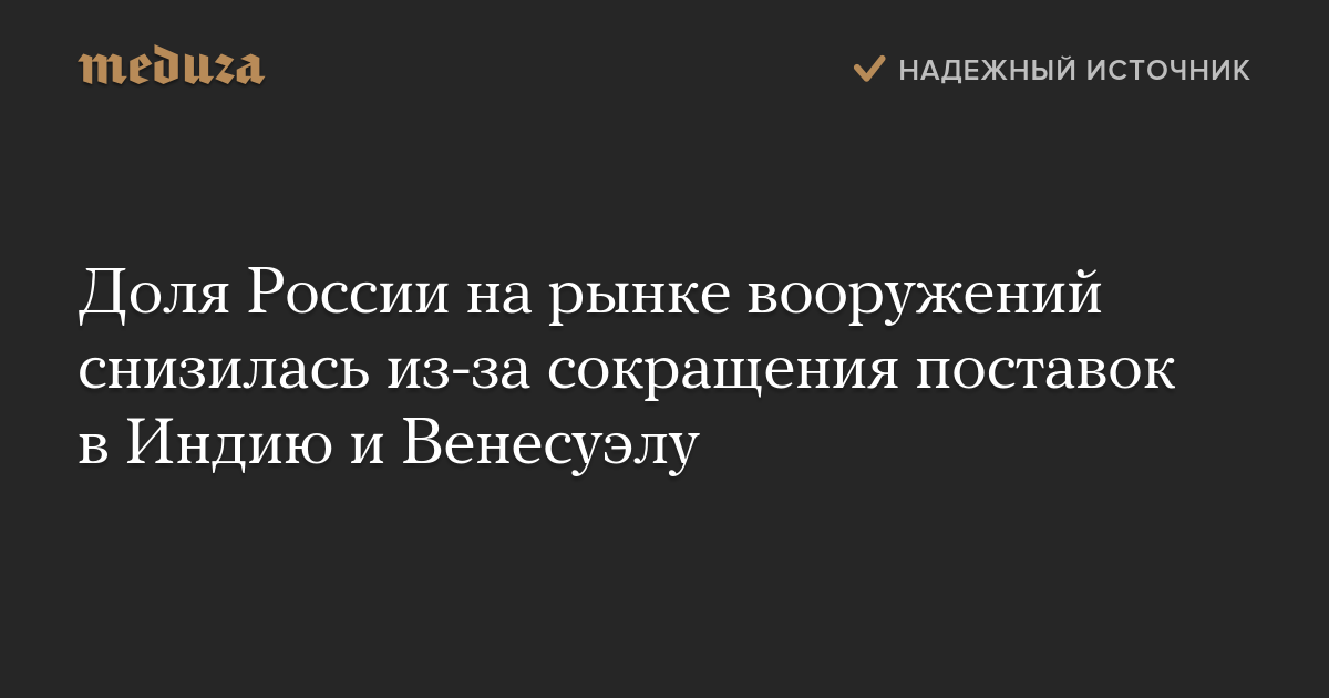 Доля России на рынке вооружений снизилась из-за сокращения поставок в Индию и Венесуэлу