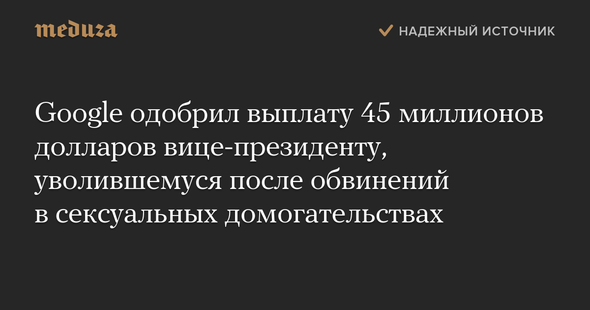 Google одобрил выплату 45 миллионов долларов вице-президенту, уволившемуся после обвинений в сексуальных домогательствах