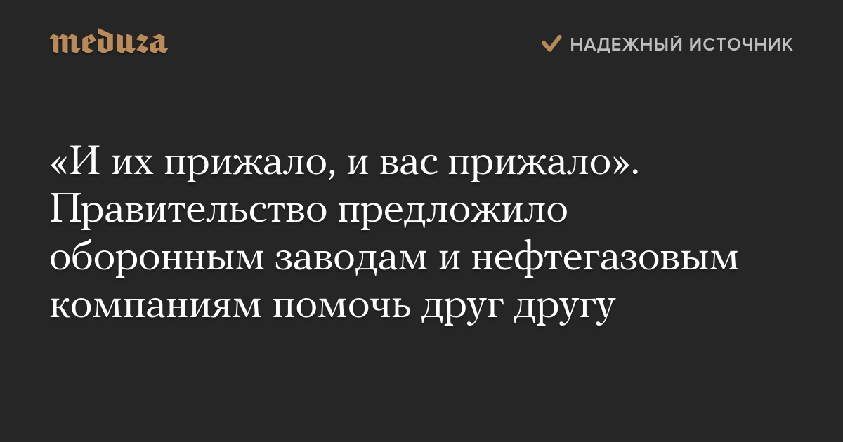 «И их прижало, и вас прижало». Правительство предложило оборонным заводам и нефтегазовым компаниям помочь друг другу