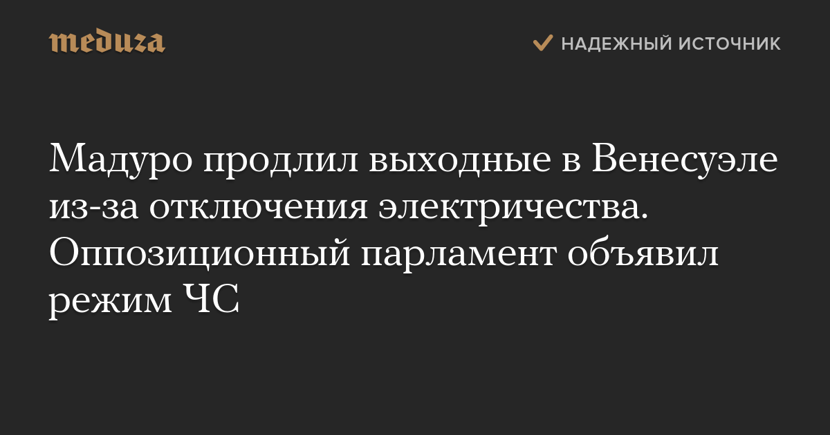 Мадуро продлил выходные в Венесуэле из-за отключения электричества. Оппозиционный парламент объявил режим ЧС