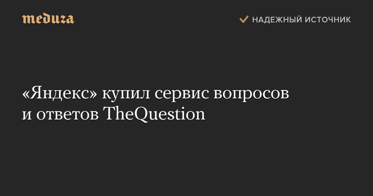 Компания «Яндекс» объявила о покупке сервиса вопросов и ответов TheQuestion. Сумма сделки не уточняется.