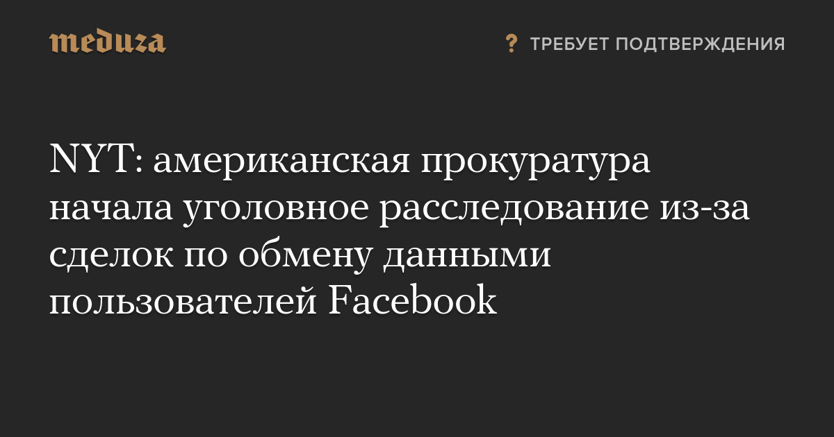 NYT: американская прокуратура начала уголовное расследование из-за сделок по обмену данными пользователей Facebook