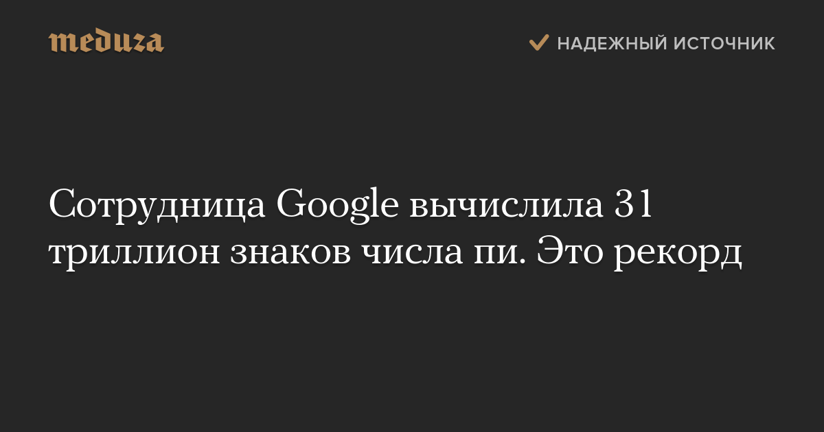 Сотрудница Google вычислила 31 триллион знаков числа пи. Это рекорд