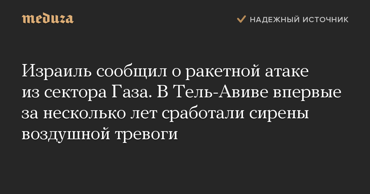 Израиль сообщил о ракетной атаке из сектора Газа. В Тель-Авиве впервые за несколько лет сработали сирены воздушной тревоги