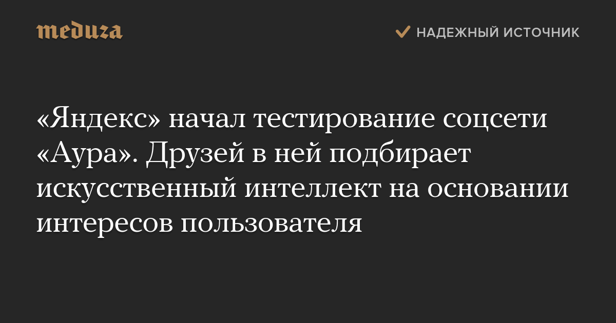 «Яндекс» начал тестирование соцсети «Аура». Друзей в ней подбирает искусственный интеллект на основании интересов пользователя