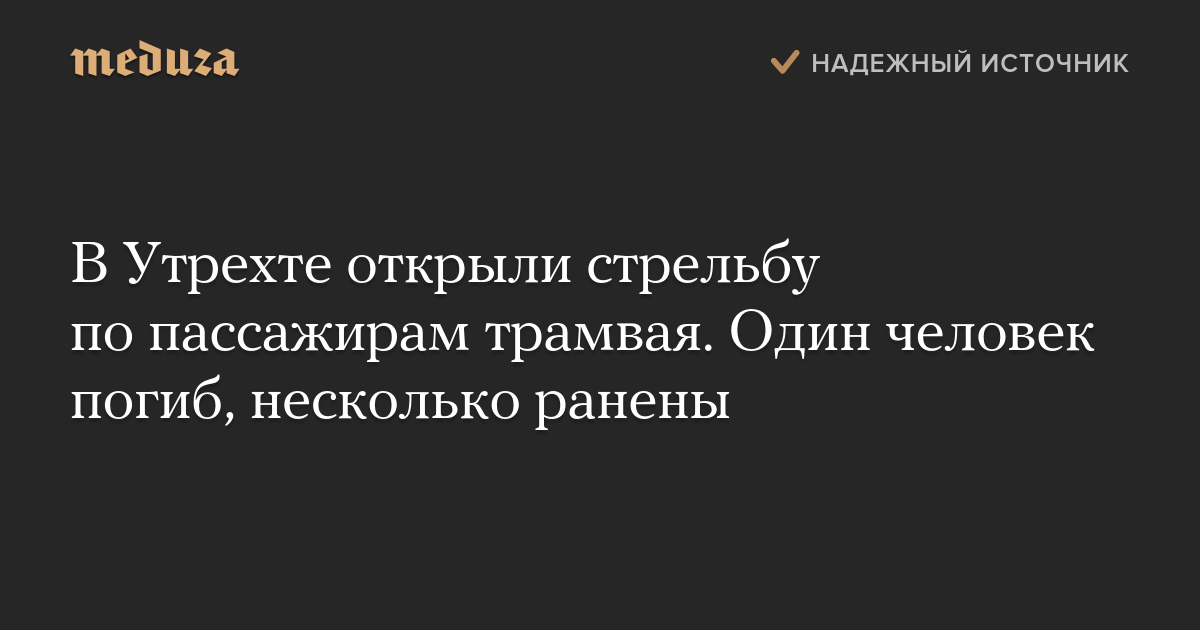 В Утрехте открыли стрельбу по пассажирам трамвая. Один человек погиб, несколько ранены