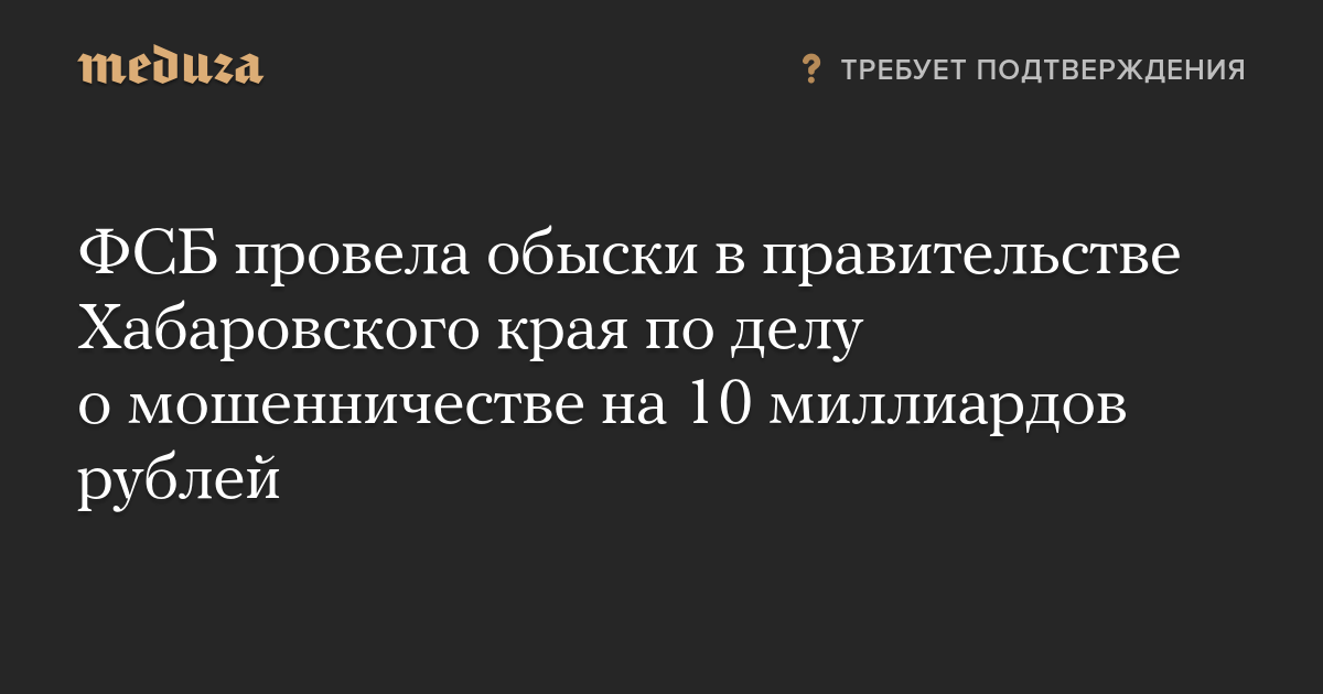 ФСБ провела обыски в правительстве Хабаровского края по делу о мошенничестве на 10 миллиардов рублей