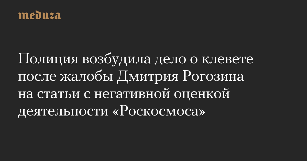 Полиция возбудила дело о клевете после жалобы Дмитрия Рогозина на статьи с негативной оценкой деятельности «Роскосмоса»