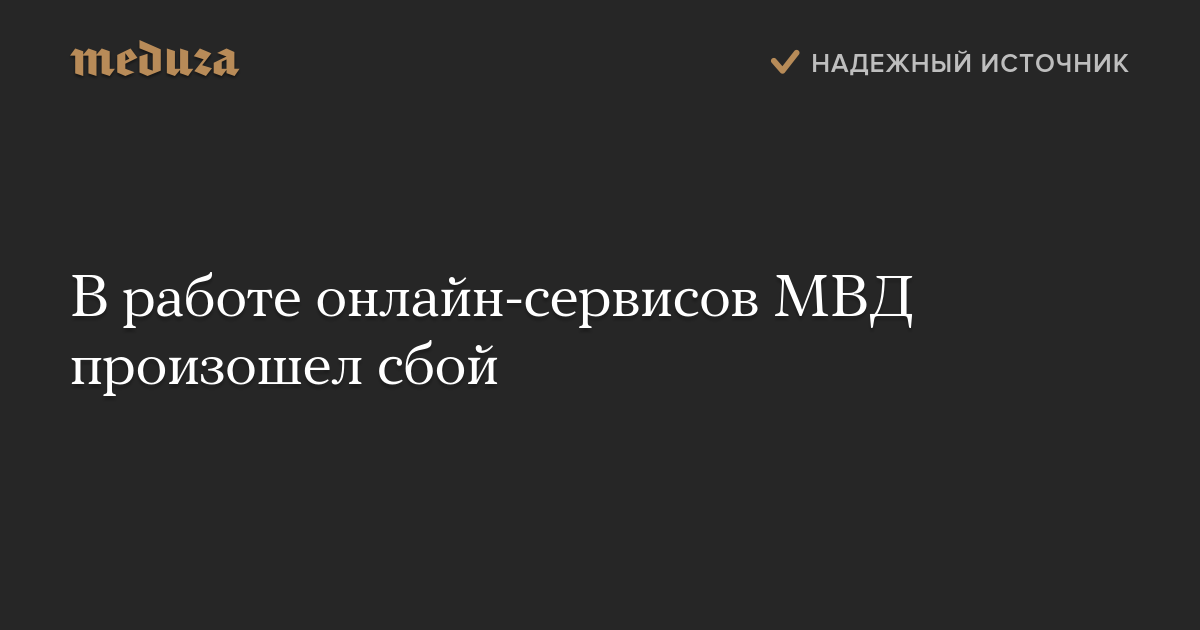 В работе онлайн-сервисов МВД 21 марта произошел сбой, сообщает «Говорит Москва» со ссылкой на сообщения радиослушателей. В частности, речь идет об информационных системах ГИБДД и управлениях по вопросам миграции Москвы и Московской области.