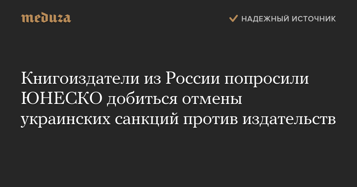 Российский книжный союз обратился к ЮНЕСКО и другим отраслевым международным организациям с просьбой убедить Украину отменить санкции, введенные в отношении российских издательств и книжных интернет-магазинов.