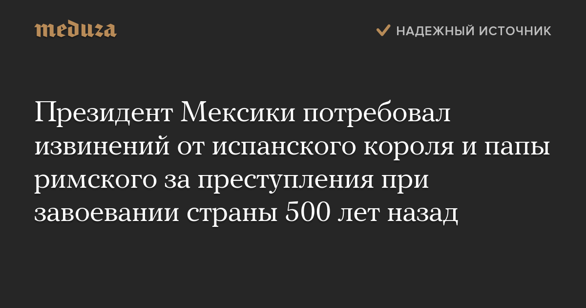 Президент Мексики потребовал извинений от испанского короля и папы римского за преступления при завоевании страны 500 лет назад