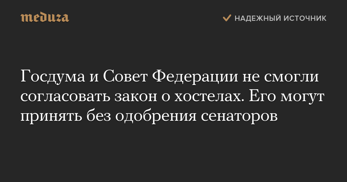 Госдума и Совет Федерации не смогли согласовать закон о хостелах. Его могут принять без одобрения сенаторов