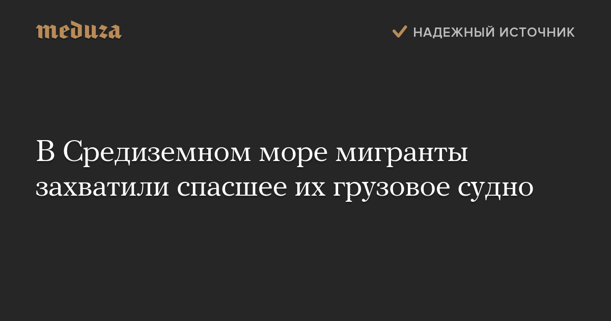 В Средиземном море мигранты захватили спасшее их грузовое судно