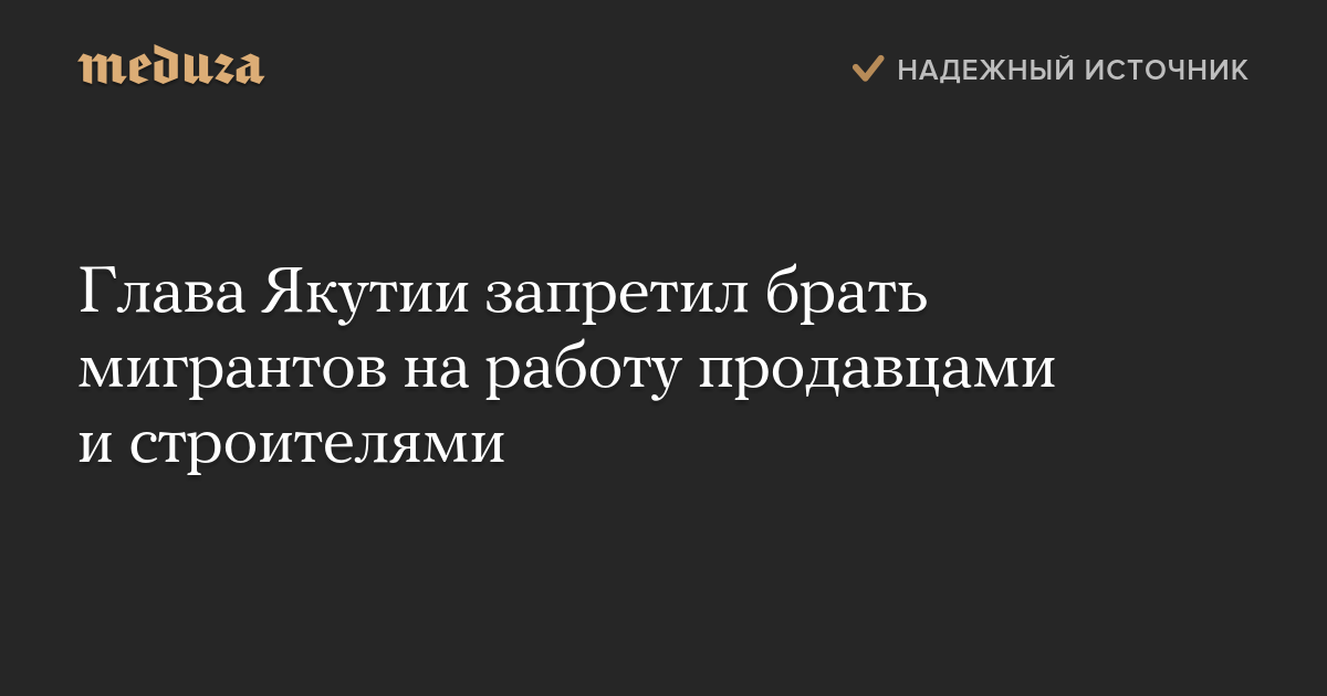 Глава Якутии запретил брать мигрантов на работу продавцами и строителями