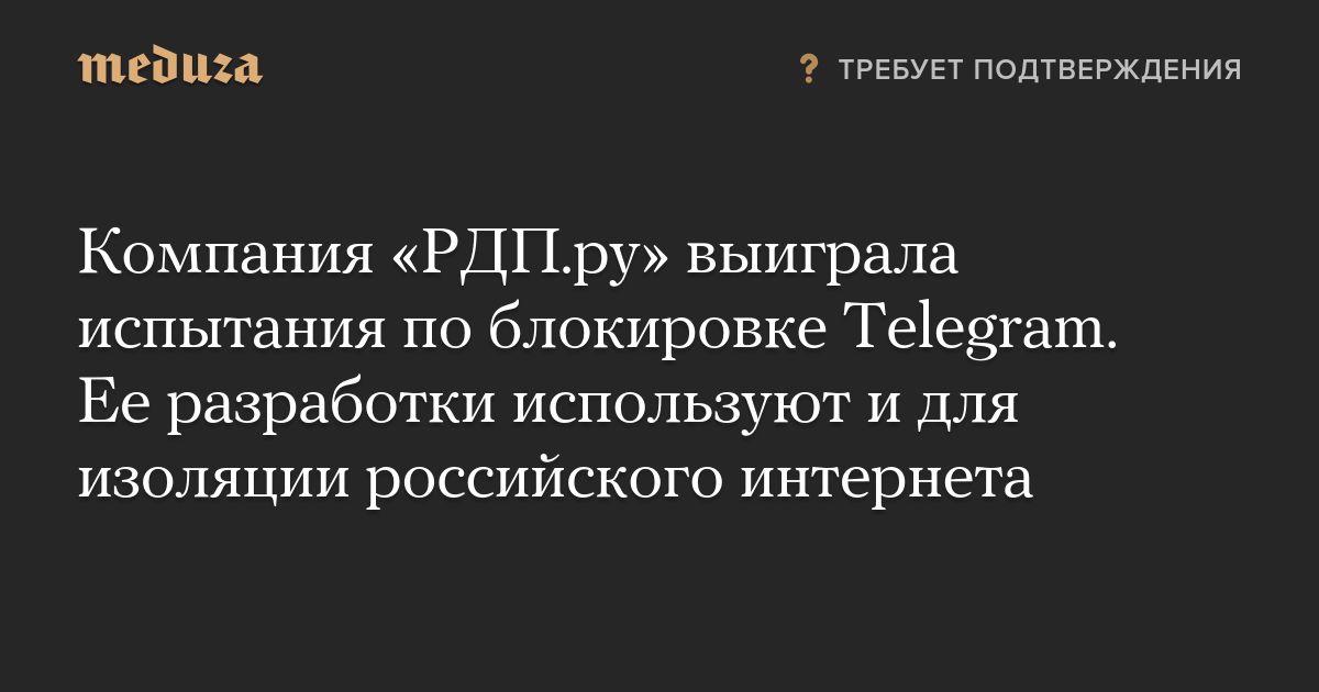 «Ведомости»: компания «РДП.ру» выиграла испытания по блокировке Telegram. Ее разработки используют и для изоляции российского интернета