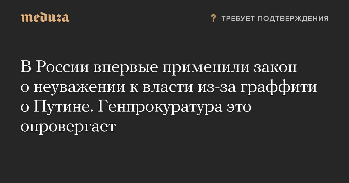 Пресс-секретарь Роскомнадзора Вадим Ампелонский сообщил TJournal, что его ведомство «проводят со СМИ профилактическую работу» в связи с вступлением в силу закона о неуважении к власти. О каких-либо обращениях из Генпрокуратуры по поводу новостей о граффити, оскорбляющих Путина, Ампелонский не упоминал.