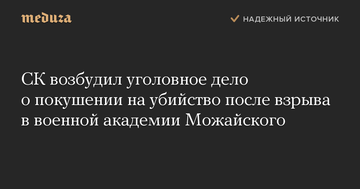 По факту взрыва в военно-космической академии имени Можайского в Санкт-Петербурге возбуждено уголовное дело о покушении на убийство двух и более лиц общеопасным способом, сообщает Следственный комитет.