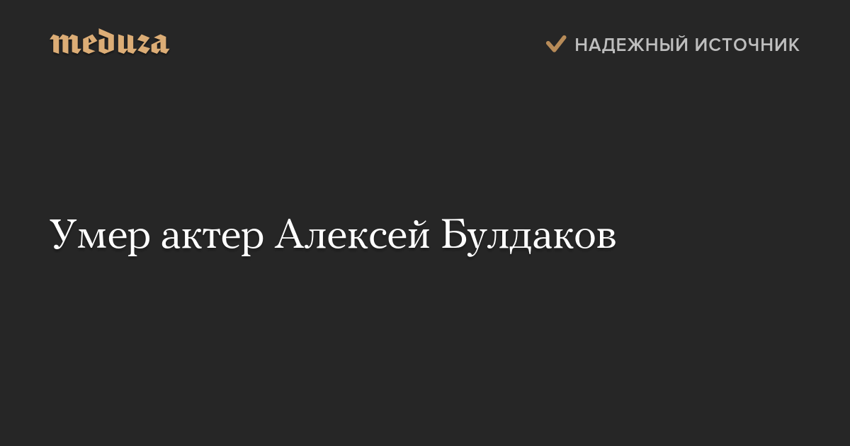 Актер Алексей Булдаков умер в возрасте 68 лет. Об этом ТАСС сообщили в пресс-службе Гильдии актеров кино Союза кинематографистов РФ.