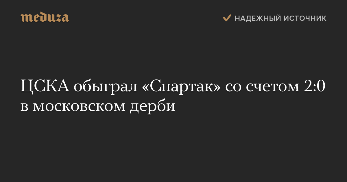 ЦСКА обыграл «Спартак» со счетом 2:0 в московском дерби