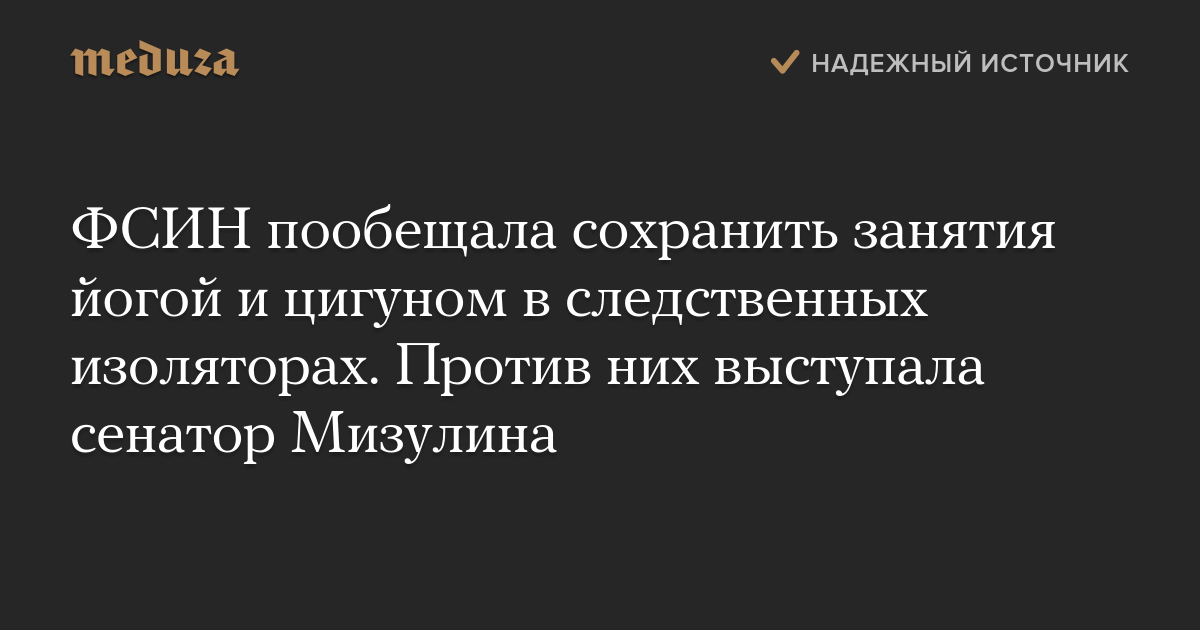 Жалоба сенатора основывалась на письме профессора-богослова Александра Дворкина. На время проверки обращения занятия йогой в СИЗО были приостановлены.