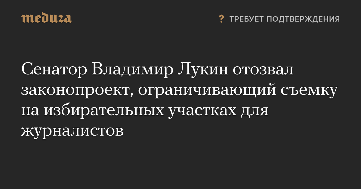 Сенатор Владимир Лукин отозвал законопроект, ограничивающий съемку на избирательных участках для журналистов