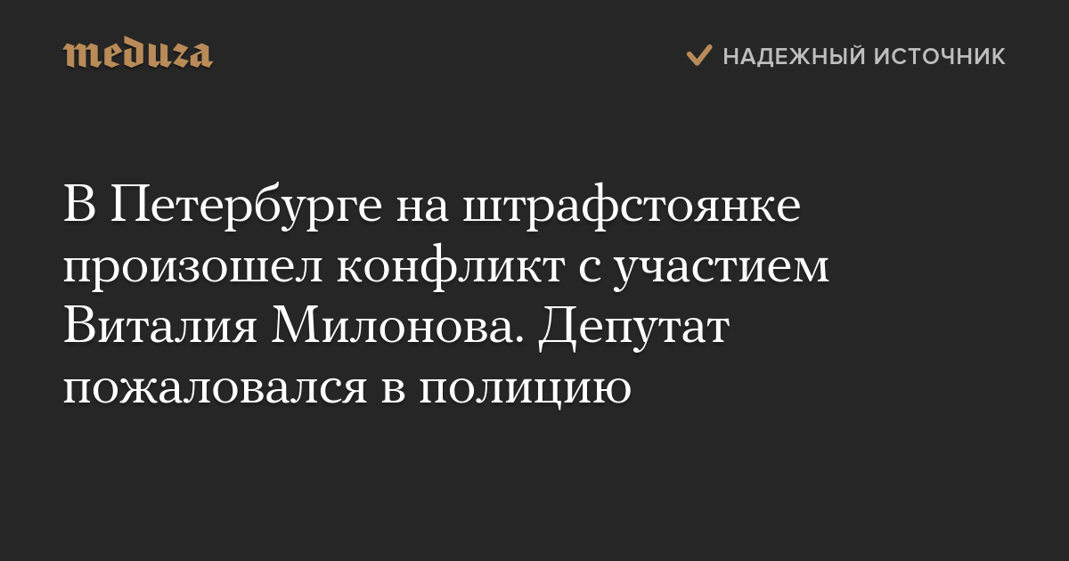 В Петербурге на штрафстоянке произошел конфликт с участием Виталия Милонова. Депутат пожаловался в полицию