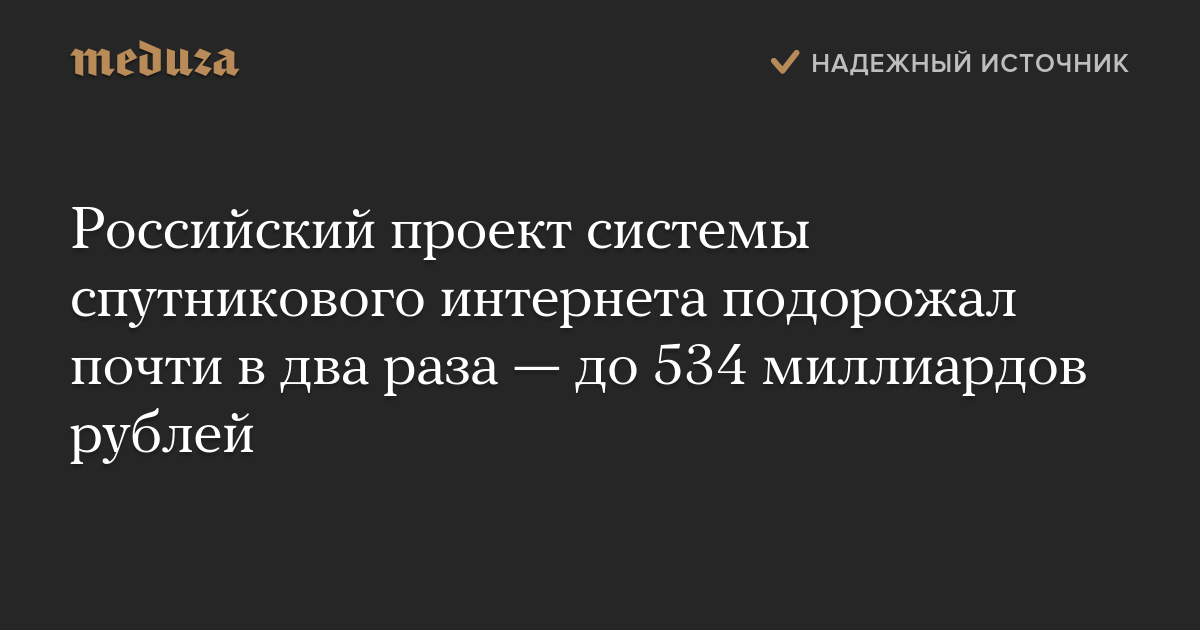 Российский проект системы спутникового интернета подорожал почти в два раза — до 534 миллиардов рублей