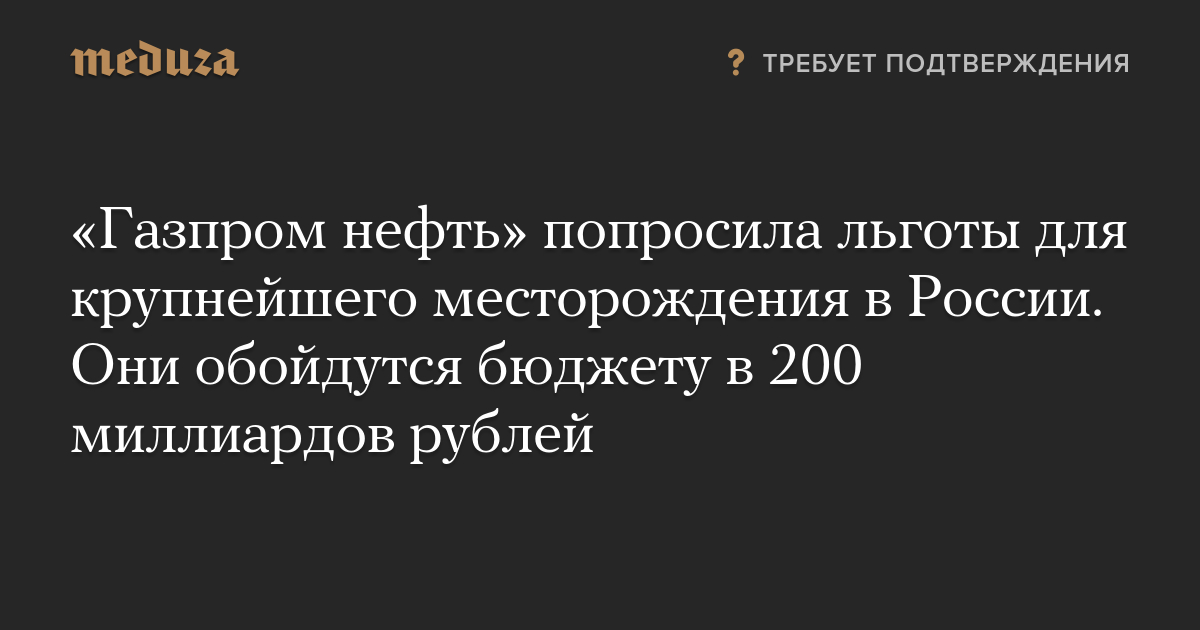 «Газпром нефть» попросила льготы для крупнейшего месторождения в России. Они обойдутся бюджету в 200 миллиардов рублей