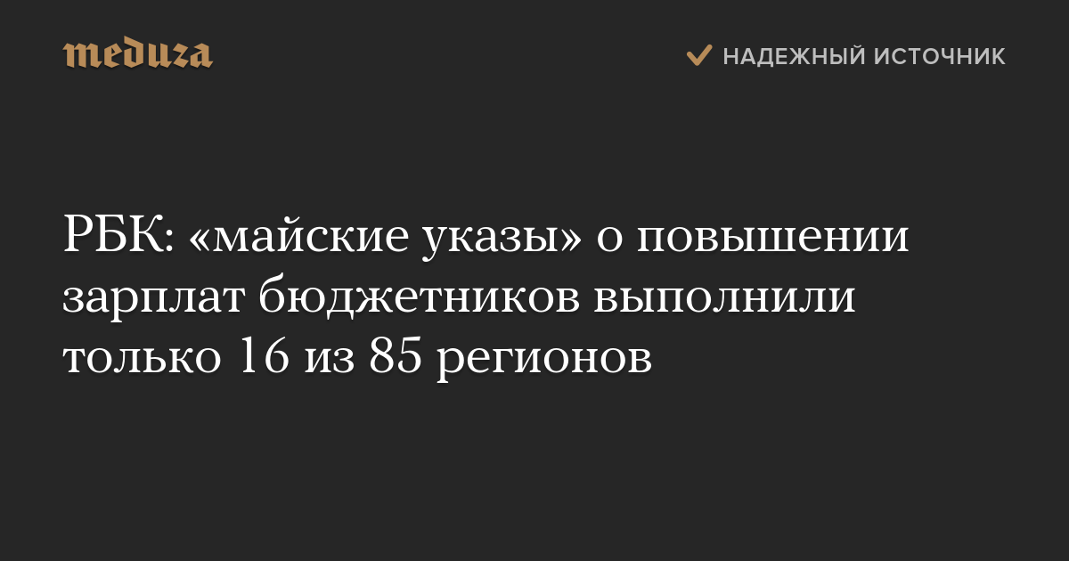 РБК: «майские указы» о повышении зарплат бюджетников выполнили только 16 из 85 регионов