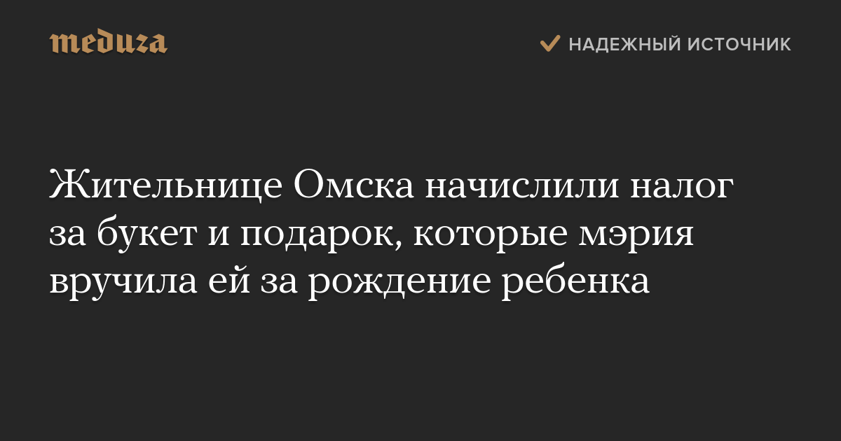 Мэрия Омска потребовала от местной жительницы Сании Абдуллиной заплатить налог за букет и подарок, которые чиновники вручили женщине за то, что та родила первого в городе ребенка в 2019 году. Уведомление из городской администрации Абдуллина показала во «ВКонтакте».
