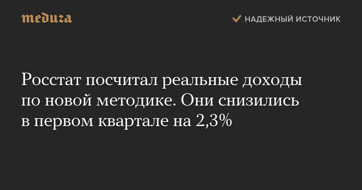 Росстат посчитал реальные доходы по новой методике. Они снизились в первом квартале на 2,3%