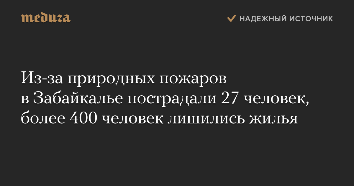 В результате пожаров пострадали 25 человек. Большинство из них получили раздражение органов зрения, им оказали помощь на месте. Ранее правительство Забайкальского края сообщило о госпитализации шести пострадавших от пожара.