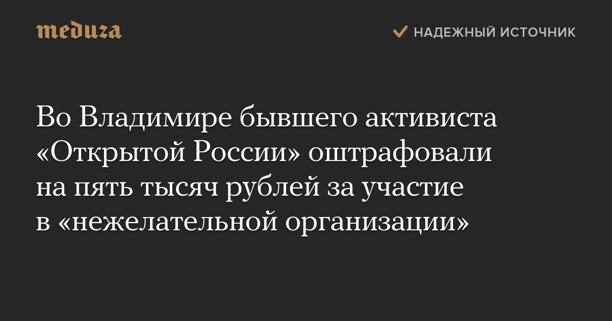 Во Владимире бывшего активиста «Открытой России» оштрафовали на пять тысяч рублей за участие в «нежелательной организации»
