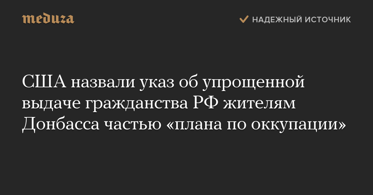 США назвали указ об упрощенной выдаче гражданства РФ жителям Донбасса частью «плана по оккупации»