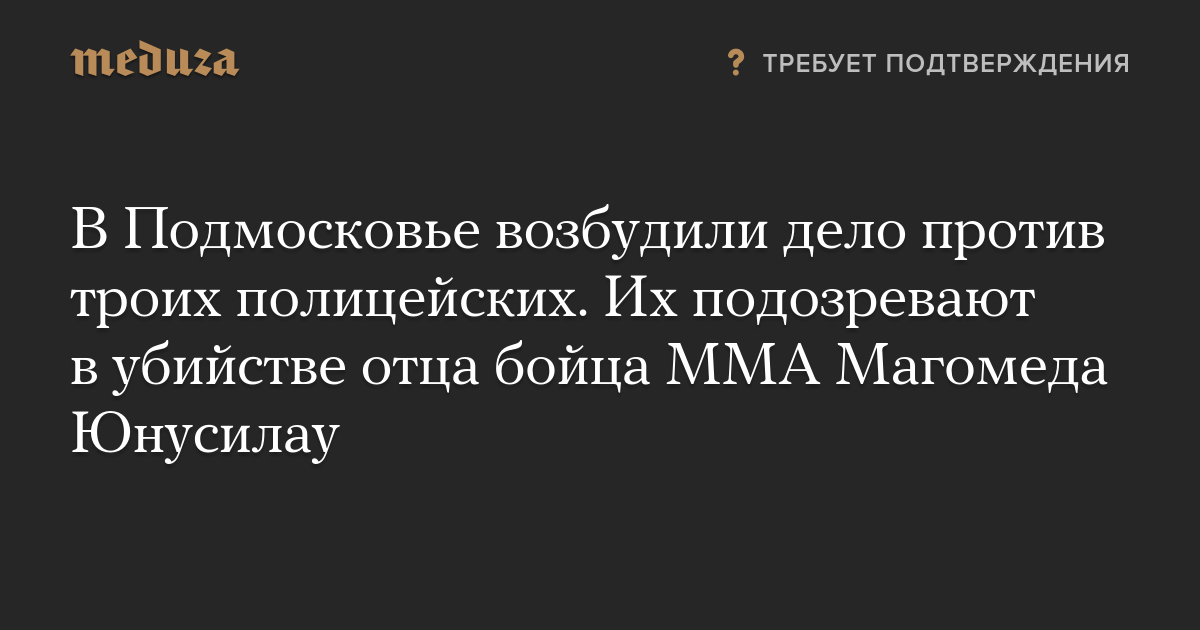 В Подмосковье возбудили дело против троих полицейских. Их подозревают в убийстве отца бойца ММА Магомеда Юнусилау