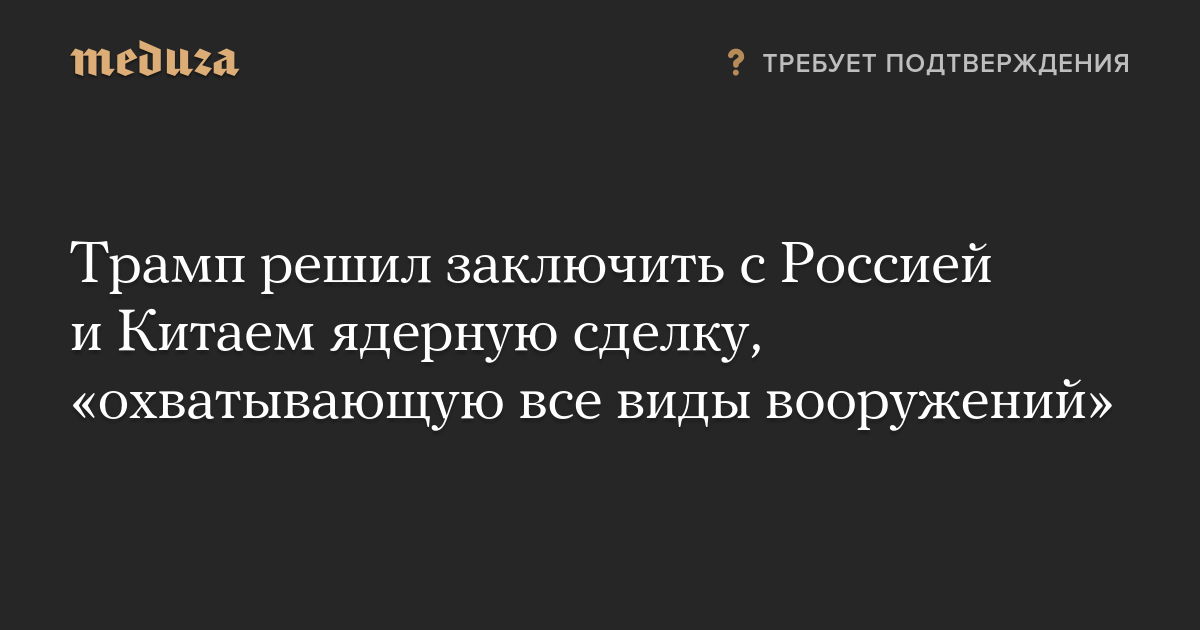 Трамп решил заключить с Россией и Китаем ядерную сделку, «охватывающую все виды вооружений»