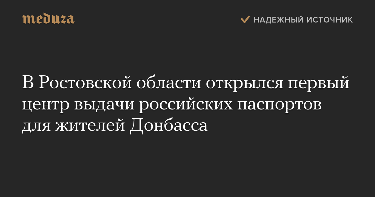 В городе Новошахтинск Ростовской области начал работать первый центр упрощенной выдачи российских паспортов жителям самопровозглашенной Луганской народной республики (ЛНР). Об этом пишет «Интерфакс» со ссылкой на представителя МВД по вопросам миграции Кирилла Адзинова.