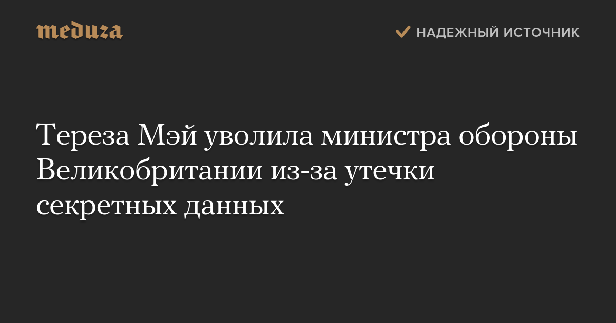 Тереза Мэй уволила министра обороны Великобритании из-за утечки секретных данных
