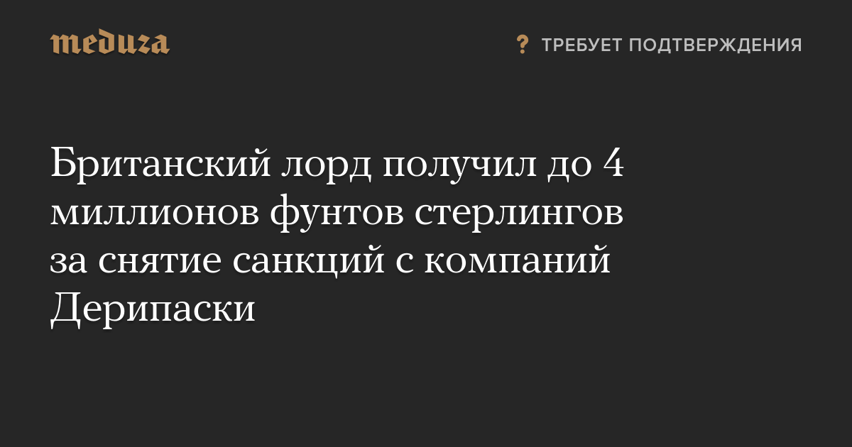 Британский лорд получил до 4 миллионов фунтов стерлингов за снятие санкций с компаний Дерипаски