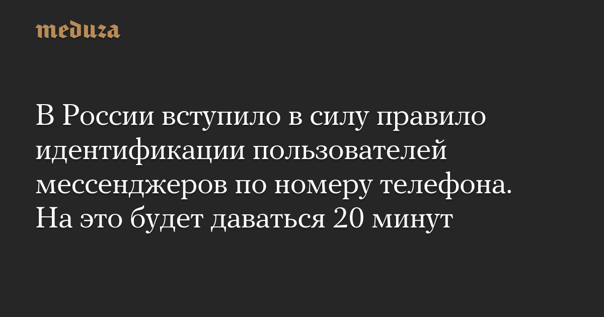 В России вступило в силу правило идентификации пользователей мессенджеров по номеру телефона. На это будет даваться 20 минут
